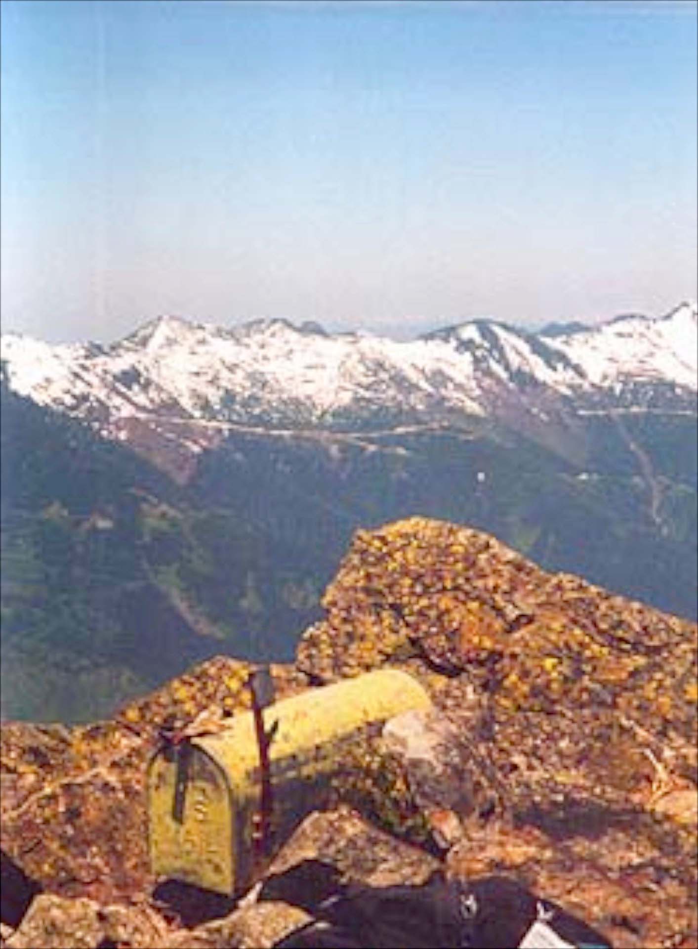 19970519Contributions06 ← Previous Next → The original mailbox on Mailbox Peak by John Maher Taken 1997/05/19. Photo by John Maher. All rights reserved. Used with permission