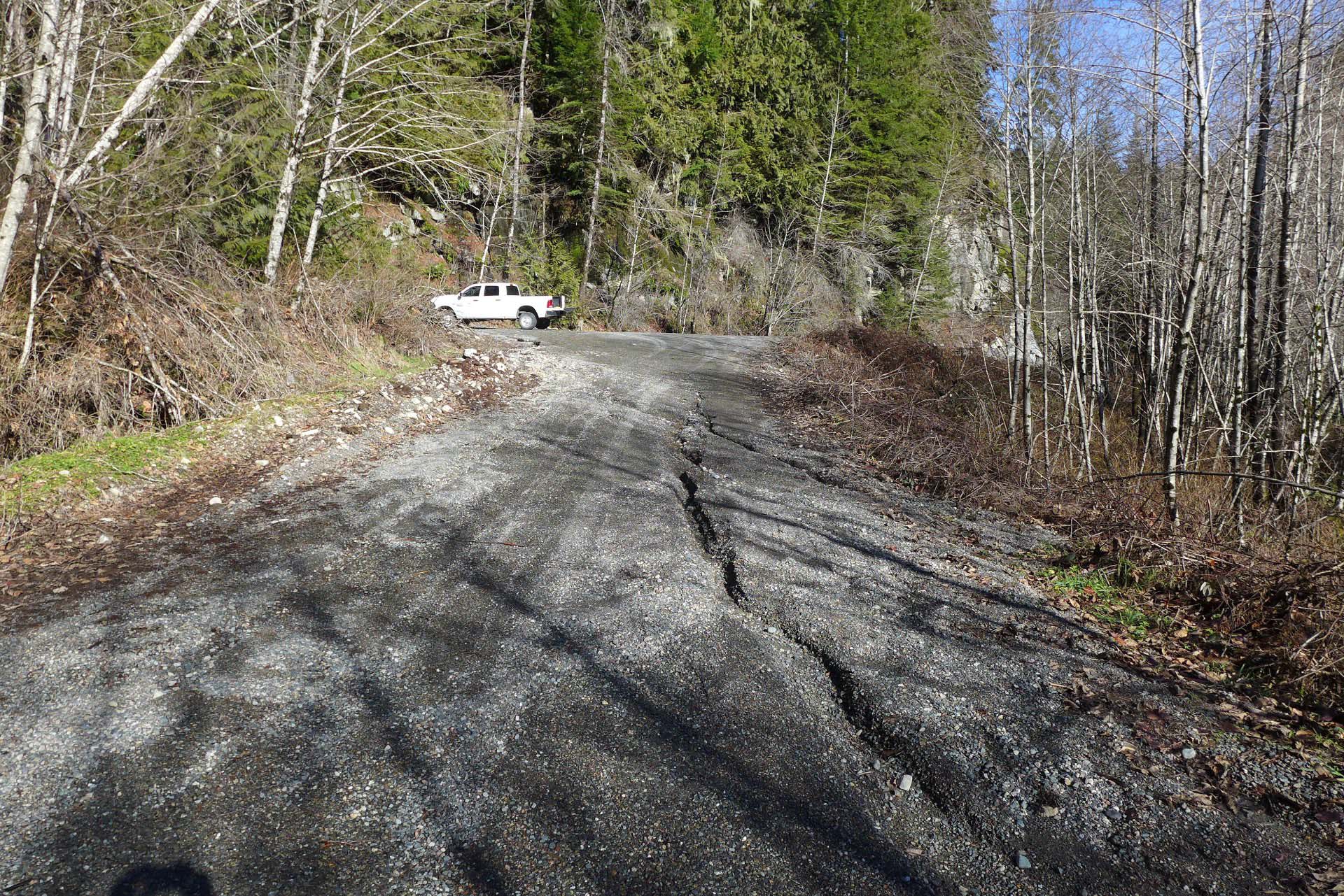 20150125MiddleForkSlump1 ← Previous Next → Small road slump and erosion approaching the CCC trail junction Creative Commons Attribution-NonCommercial-ShareAlike. Attribution: “midforkrocks.com”