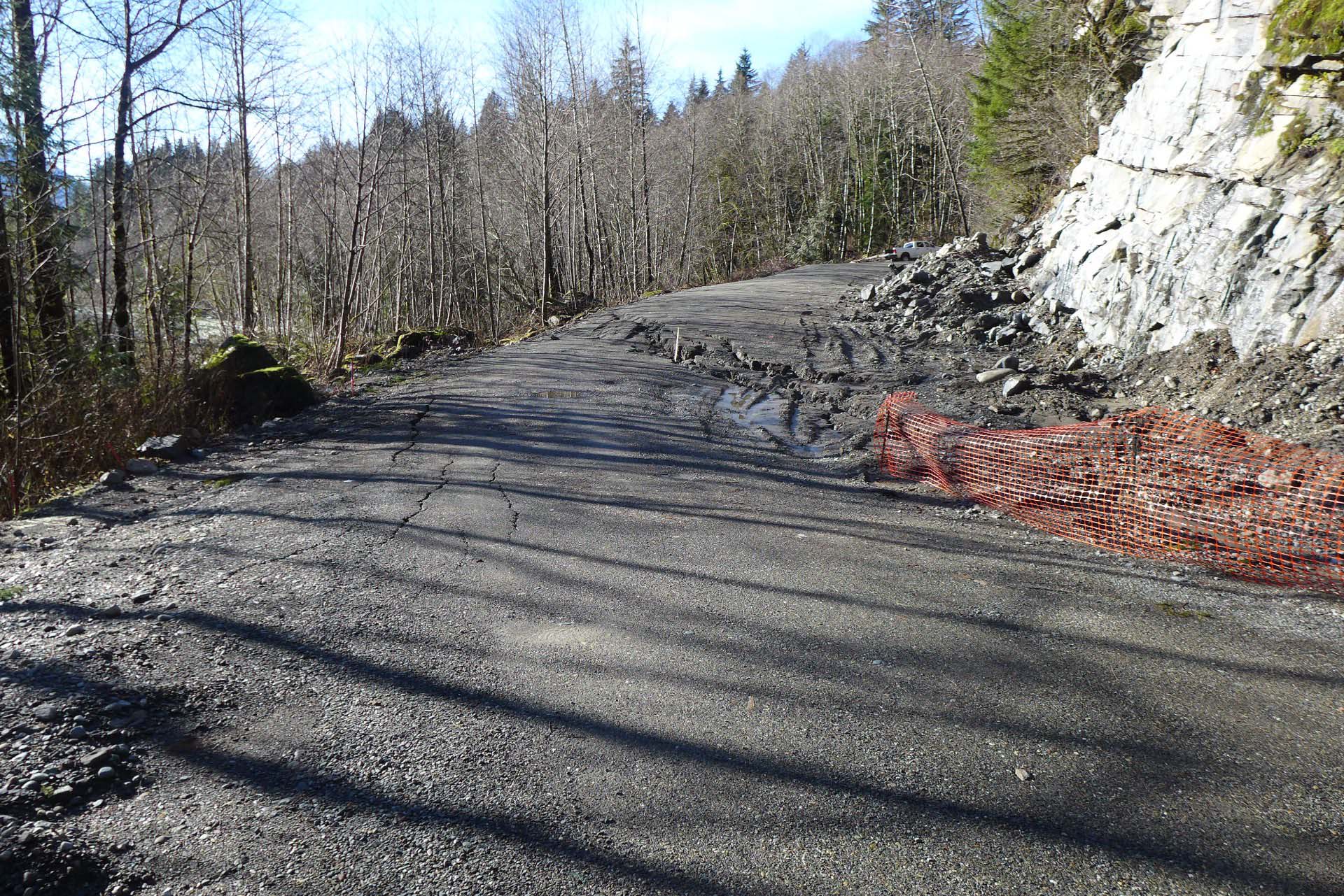 20150125MiddleForkSlump2 ← Previous Next → Road slump by CCC trail junction Creative Commons Attribution-NonCommercial-ShareAlike. Attribution: “midforkrocks.com”