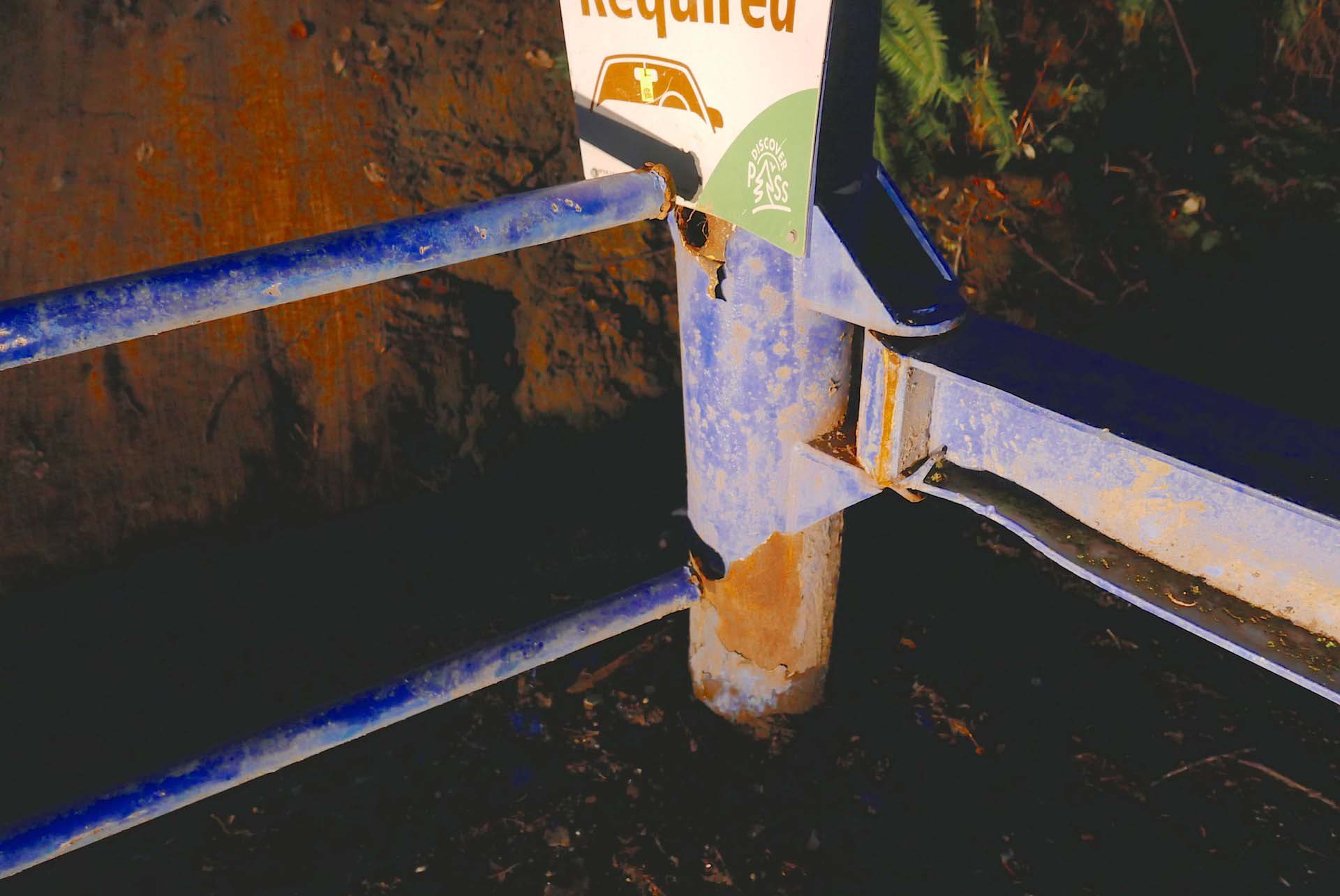 20160220BessemerGateDamage Next → The Bessemer Gate is mostly back together but these bars were pulled away from the hinge post. Creative Commons Attribution-NonCommercial-ShareAlike. Attribution: “midforkrocks.com”